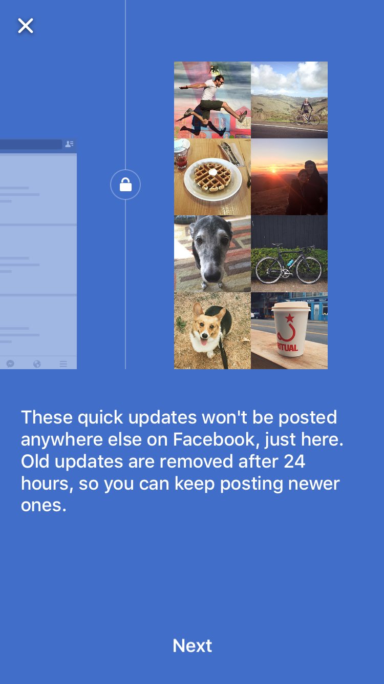 Facebook serait actuellement en train de tester une nouvelle fonctionnalité largement inspiré de Snapchat. Il s’agirait plus exactement de contenus publiés de manière éphémère pour une durée de 24 heures, nommés Quick Updates. La portée et la visibilité de ces publications seraient limitées à la fonctionnalité, et les messages ne seraient ainsi pas visibles sur les profils des utilisateurs ni dans le flux d’actualité.