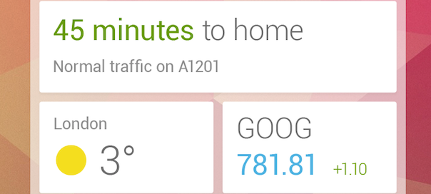 Le géant de la recherche et éditeur du désormais célèbre OS mobile Android communique aujourd’hui officiellement sur l’arrivée du widget Google Now. De quoi accéder aux précieuses informations depuis l’écran d’accueil sans nécessité d’ouvrir l’application mobile.