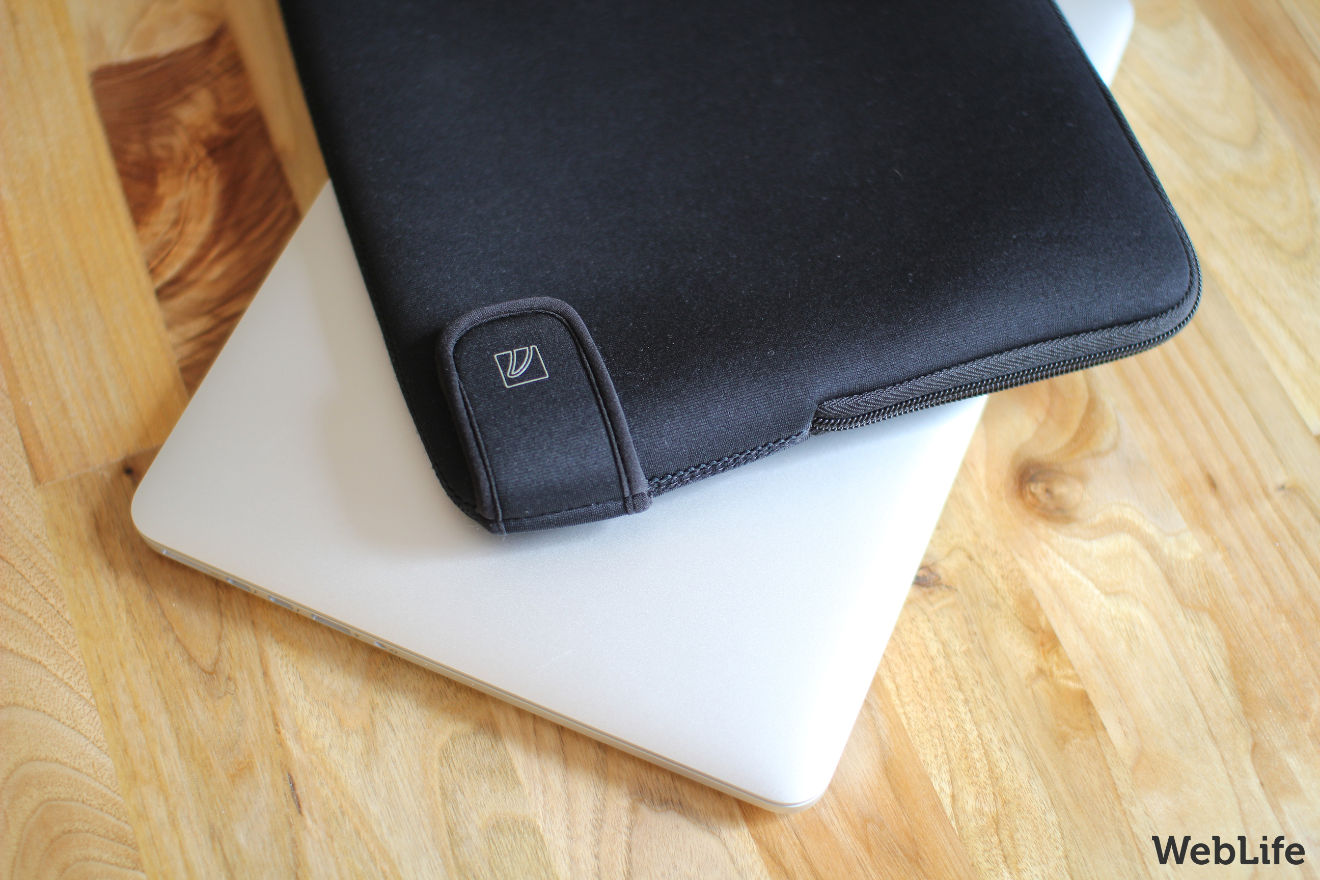 Tucano est finalement allé plus loin en intégrant une sécurité supplémentaire nommée Anti-Slip System. Il s’agit d’une bande élastique en néoprène venant maintenir le MacBook dans la housse, afin d’une part de le protéger des éventuels contacts avec des dents de la fermeture éclair, mais également l’empêcher de glisser accidentellement hors de l’étui.