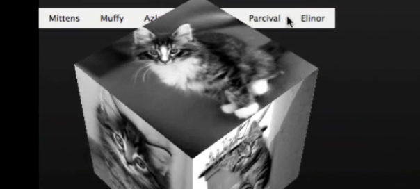 Retrouvez dans la vidéo suivante un exemple de menu faisant tourner un cube pour faire apparaître une à une ses faces. L’effet en trois dimensions est intéressant.